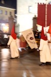 There was one guy dressed a bit differently who was directing traffic. He told the lines where to go, when to make a new row, and even told them when they needed to tie their shoes or hide their pants! Some of the guys went barefoot as a symbol of pentinence. (If I was a cofrade I’d go barefoot also. I wouldn’t notice the cold and I prefer not wearing shoes anyway.) I got to watch the cofrades lighting their candles and even got to see where one guy kept his lighter. Some guys had loafers, others boots. The tunics varied in shades of tan and had an elastic band running around the middle. I was lucky also that the rows of cofrades didn’t block my view until they had all entered the plaza and filled it up completely. In total, there were about 2300 cofrades.
