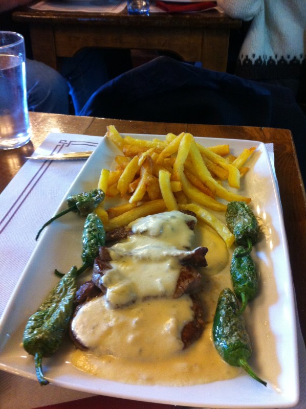 Isa’s lunch of Solomillo con patatas y pimientos del padrón