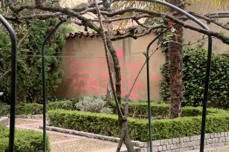 Love graffiti in the garden of Calisto and Melibea.